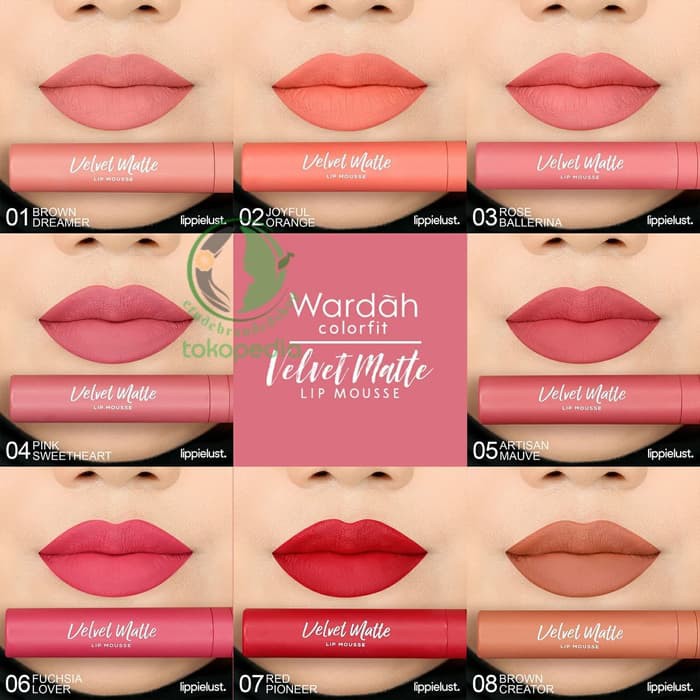 shopee indonesia. Wardah colorfit velvet matte lip mousse (new shade 1-14)